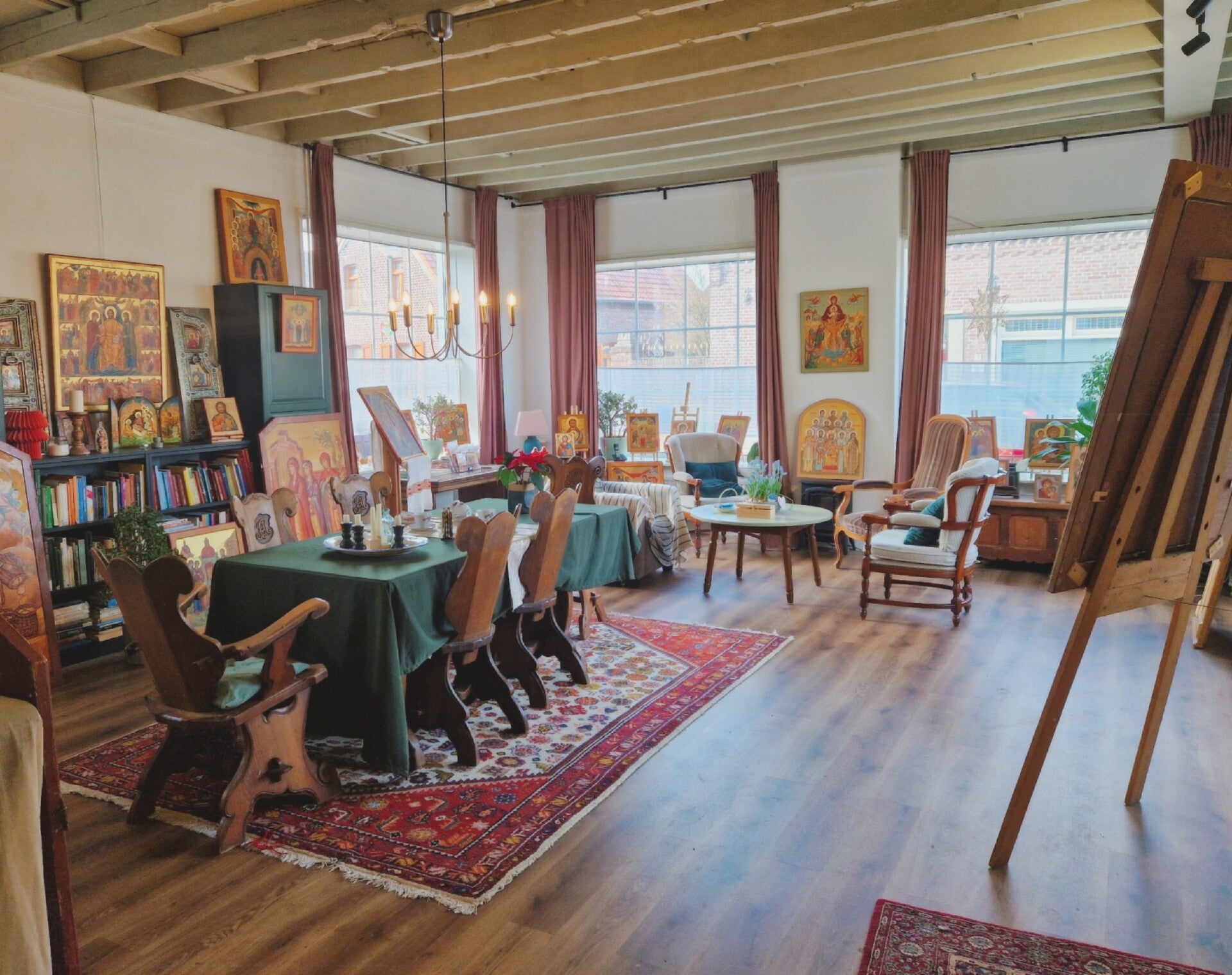 Door het atelier worden iconen niet alleen gezien als kunstobjecten, maar als "vensters op het goddelijke": beelden die uitnodigen tot bezinning, verstilling en ontmoeting met het heilige. We hopen dat u deze diepere betekenis voelt wanneer u onze kunstwerken ziet of in huis haalt.